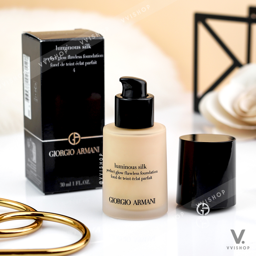 Giorgio Armani Luminous Silk Foundation รองพื้นสูตรน้ำปราศจากความมัน เนื้อเนียนบางเบาเกลี่ยง่ายมอบการปกปิดรอยสิวเบลอผิวและริ้วรอยเล็กๆได้ดี เนื้อสัมผัสแบบซาตินแมตต์แต่ยังคงความชุ่มชื้นเพื่อผิวดูสวยเรียบเนียนไร้ที่ติอย่างเป็นธรรมชาติผสานเทคโนโลยีอันเป็นเอกลักษณ์ของ Armani อย่าง Micro-fil & Trade Technology ช่วยให้สีรองพื้นดูเป็นธรรมชาติกลมกลืนเรียบเนียนไปกับผิว สามารถทาทับปรับระดับการปกปิดได้ตามต้องการ ดูไม่หนา ไม่โบ๊ะ ผิวหน้าเนียนใสและมีออร่าตลอดทั้งวัน เหมาะสำหรับทุกสภาพผิว- เนื้อบางเบา เกลี่ยง่าย ไม่เหนอะหนะผิว- อนุภาคเม็ดสีละเอียด ทำให้ผิวกระจ่างใสขึ้น- ปกปิดจุดบกพร่องของผิวได้อย่างแนบเนียน- ปรับระดับการปกปิดได้ตามต้องการเบอร์- No.4 สำหรับผิวกลางๆ โทนเหลืองHOW TO USE