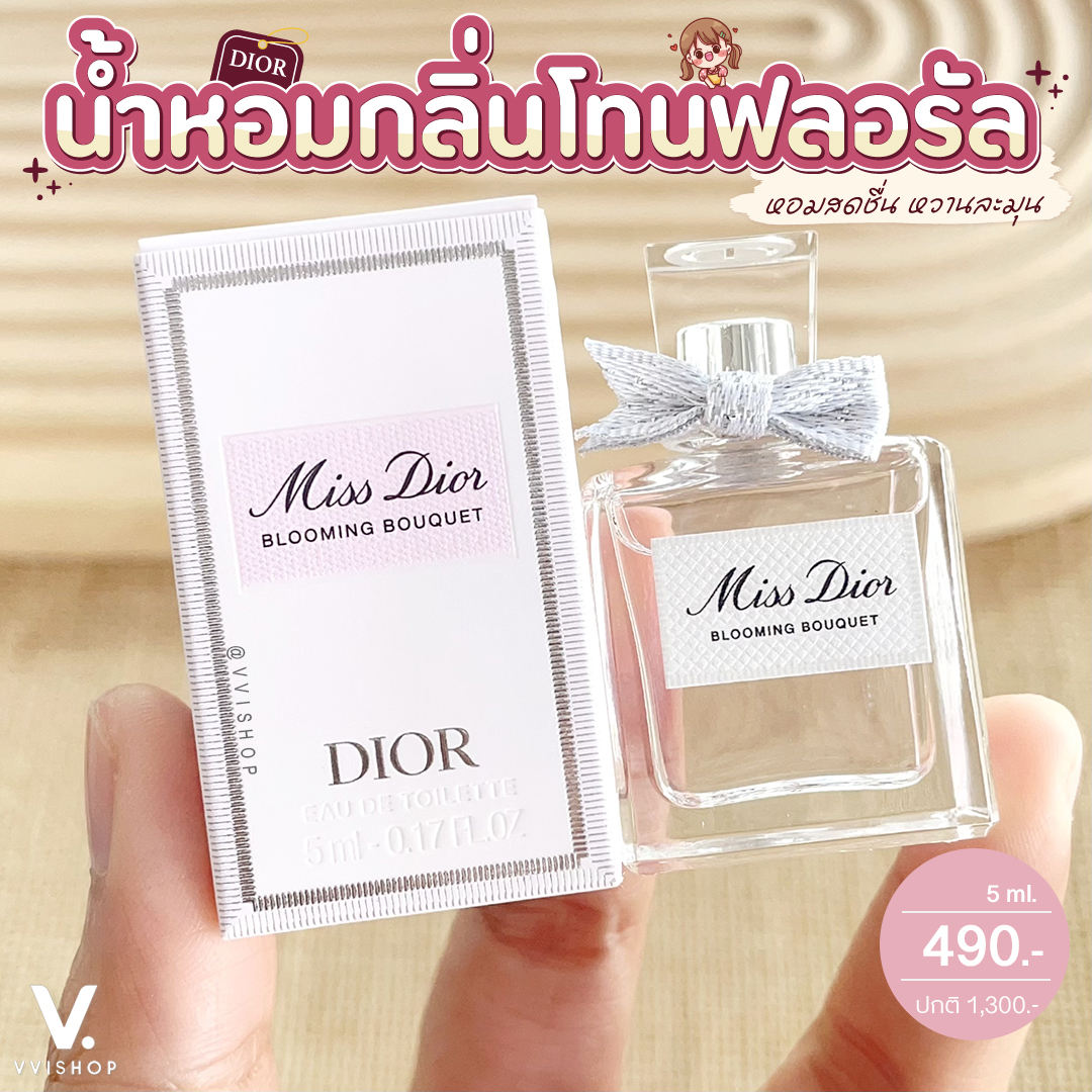 Dior Miss Dior Blooming Bouquet Eau de Toilette รุ่นใหม่โบว์ผ้าน้ำหอมกลิ่นดอกไม้แนว Floral Fresh กลิ่นยอดฮิตสำหรับสาวๆ ที่ต้องการเพิ่มความสดใสและร่าเริง กลิ่นหอมสดชื่น หวานละมุนอ่อนๆ ฉีดแล้วได้ฟีลน่ารักสดใสสไตล์คุณหนูสุดๆ (กลิ่นดอกกุหลาบ ดอกพีโอนี ตามด้วยความสดชื่นจากแอพริคอต พีช ส้มแมนดาริน และไวท์มักส์)น้ำหอม Miss Dior Blooming Bouquet ความหอมที่จะทำให้นึกถึงเดรสสุดสวยที่ถูกถักทอด้วยดอกไม้นานาพันธุ์ ซึ่งกลิ่นนี้ได้รับการดีไซน์ขึ้นเพื่อเป็นเกียรติให้กับความหลงใหลในดอกไม้ของคริสเตียน ดิออร์ สัมผัสได้ถึงกลิ่นดอกพีโอนีและกุหลาบดามัสกัสอันนุ่มนวลและอ่อนโยน เพิ่มความสดชื่นด้วยกลิ่นมะกรูดคาลาเบรียน ตามมาด้วยกลิ่นไวท์มัสก์ซึ่งร้อยเรียงกันอย่างลงตัวเสมือนบทกลอน กลิ่นไอความสดชื่นของดอกไม้ในฤดูใบไม้ผลิสร้างสรรค์มาเพื่อสาวทรงเสน่ห์และขี้เล่นในแบบ Miss Dior- Top Notes : Bergamot, Sweet Pea- Middle Notes : Rose, Peony- Base Notes : White MuskHOW TO USE