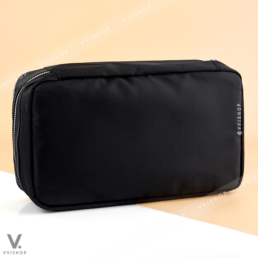 มาพร้อมกระเป๋า 2 ชั้น ชั้นบนสำหรับใส่แปรงแต่งหน้า และชั้นล่างสำหรับใส่เมคอัพหรืออุปกรณ์อื่นๆ ได้แบบเยอะมาก ซิปแยกชั้น เปิดได้กว้าง หยิบของได้สะดวก