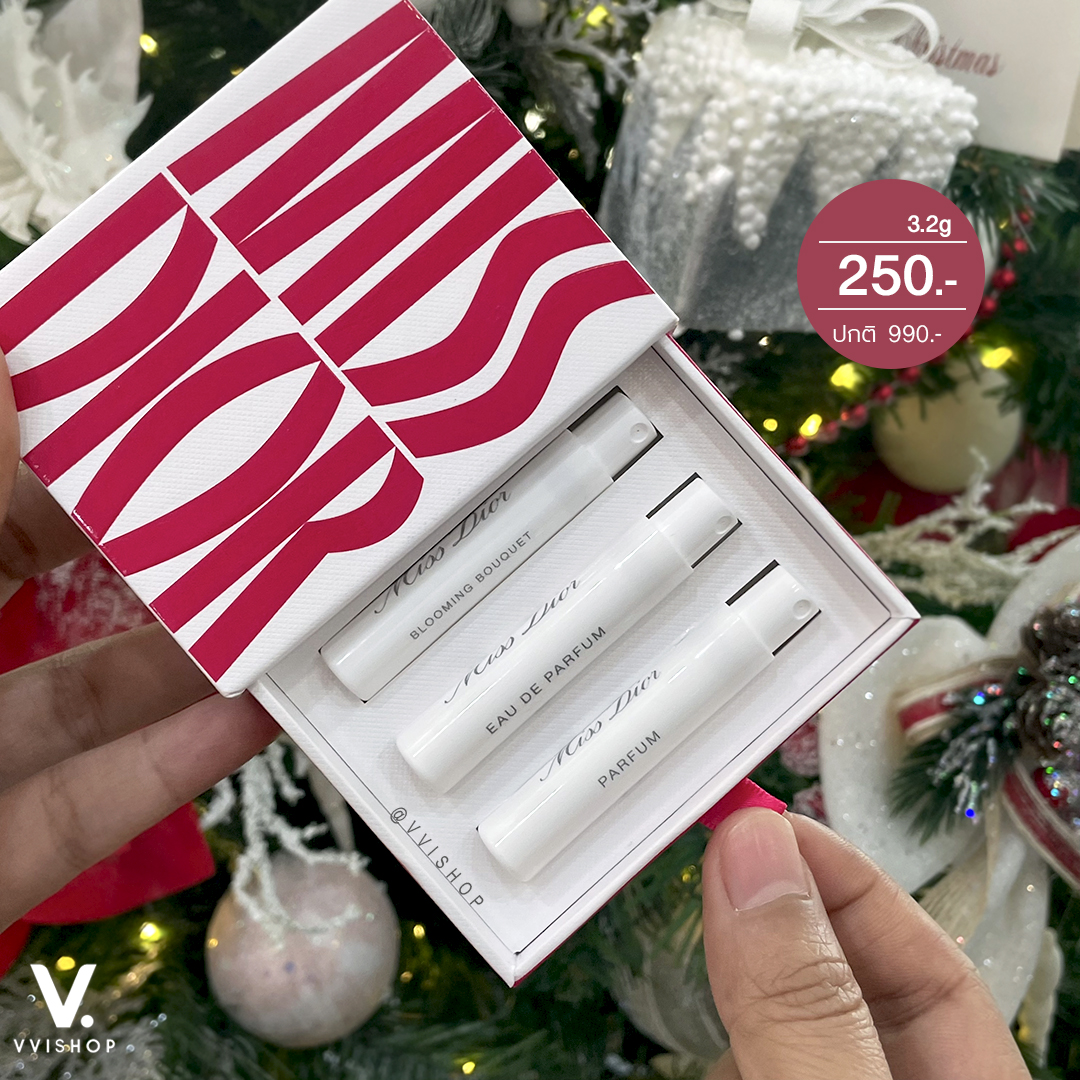 เซตน้ำหอม Miss Dior ขนาดทดลอง 3 กลิ่นซิกเนเจอร์ที่ได้รับความนิยมอย่างต่อเนื่อง ทั้งกลิ่นน่ารักสดใส หอมหวานเซ็กซี่ และกลิ่นเข้มข้นติดทนนาน เหมาะสำหรับพกพา