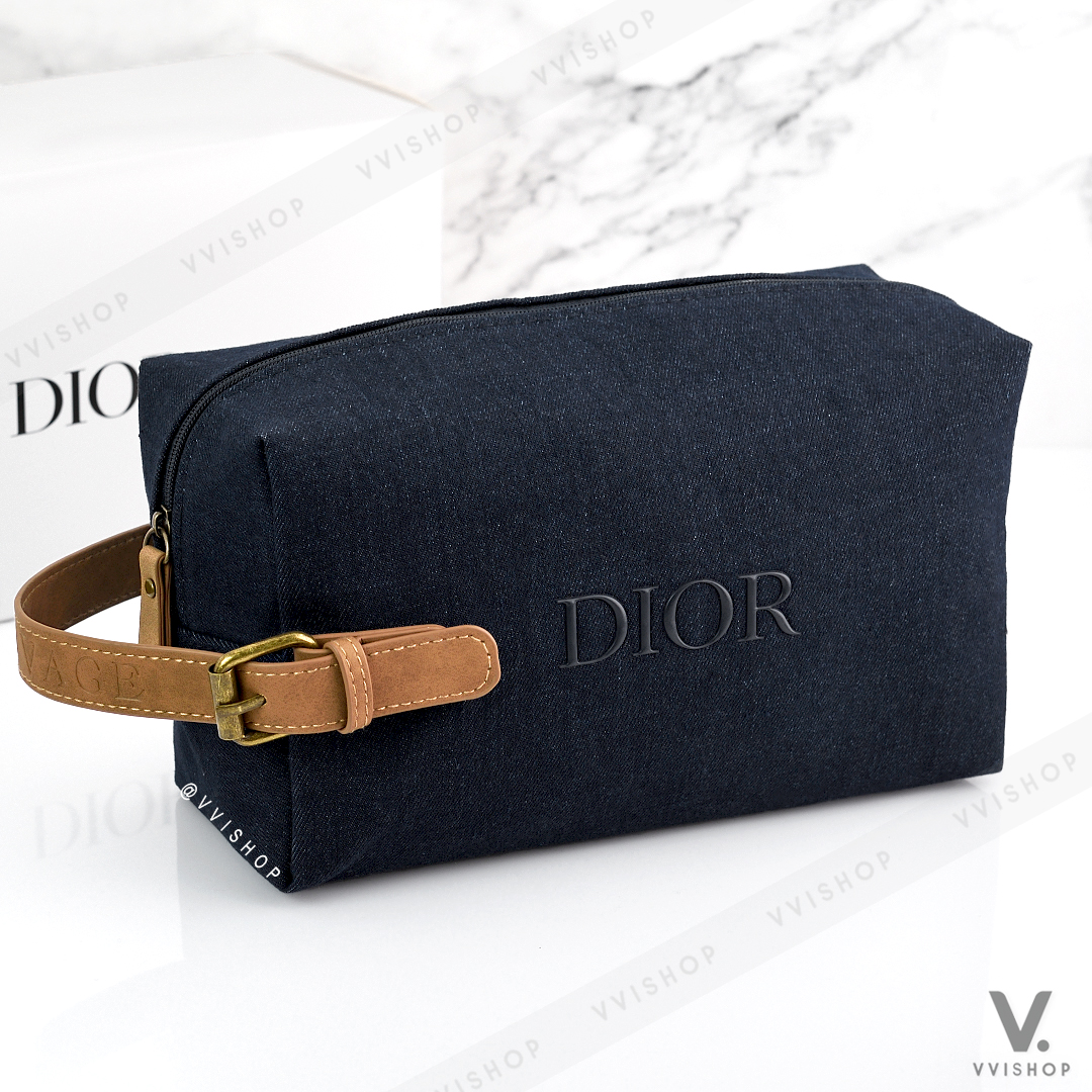 กระเป๋าผ้าเดนิมสีน้ำเงินเข้ม สินค้าในคอลเลคชั่น Sauvage จาก Dior Beauty ดีไซน์เท่ห์ดูดี แข็งแรงทนทาน เหมาะสำหรับใส่เครื่องสำอางและอุปกรณ์ของใช้ส่วนตัว สำหรับเดินทาง จุของได้เยอะ ใช้ได้ทั้งผู้ชายและผู้หญิง