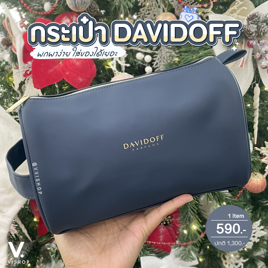 กระเป๋าพรีเมียมที่มาพร้อมคุณสมบัติเน้นการใช้งานจริงและดีไซน์ที่เข้ากับภาพลักษณ์ของแบรนด์ รูปทรงเรียบง่ายแต่ดูดี สีน้ำเงินเข้มตัดกับโลโก้ “DAVIDOFF PARFUMS" สีทองโดดเด่น เหมาะสำหรับใส่เครื่องสำอาง น้ำหอมและอุปกรณ์ของใช้ส่วนตัวสำหรับเดินทาง จุของได้เยอะ ใช้ได้ทั้งผู้ชายและผู้หญิง