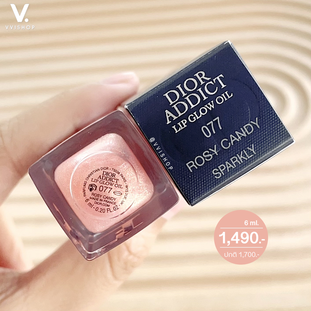 077 Rosy Candy : สีส้มพีชเจือชมพูนิดๆ เนื้อสีใสประกายมุกเล่นแสงระยิบระยับ ลิปออยล์มอบความชุ่มชื้นยาวนานและปรับสีตามค่า pH ของริมฝีปากเฉพาะบุคคล