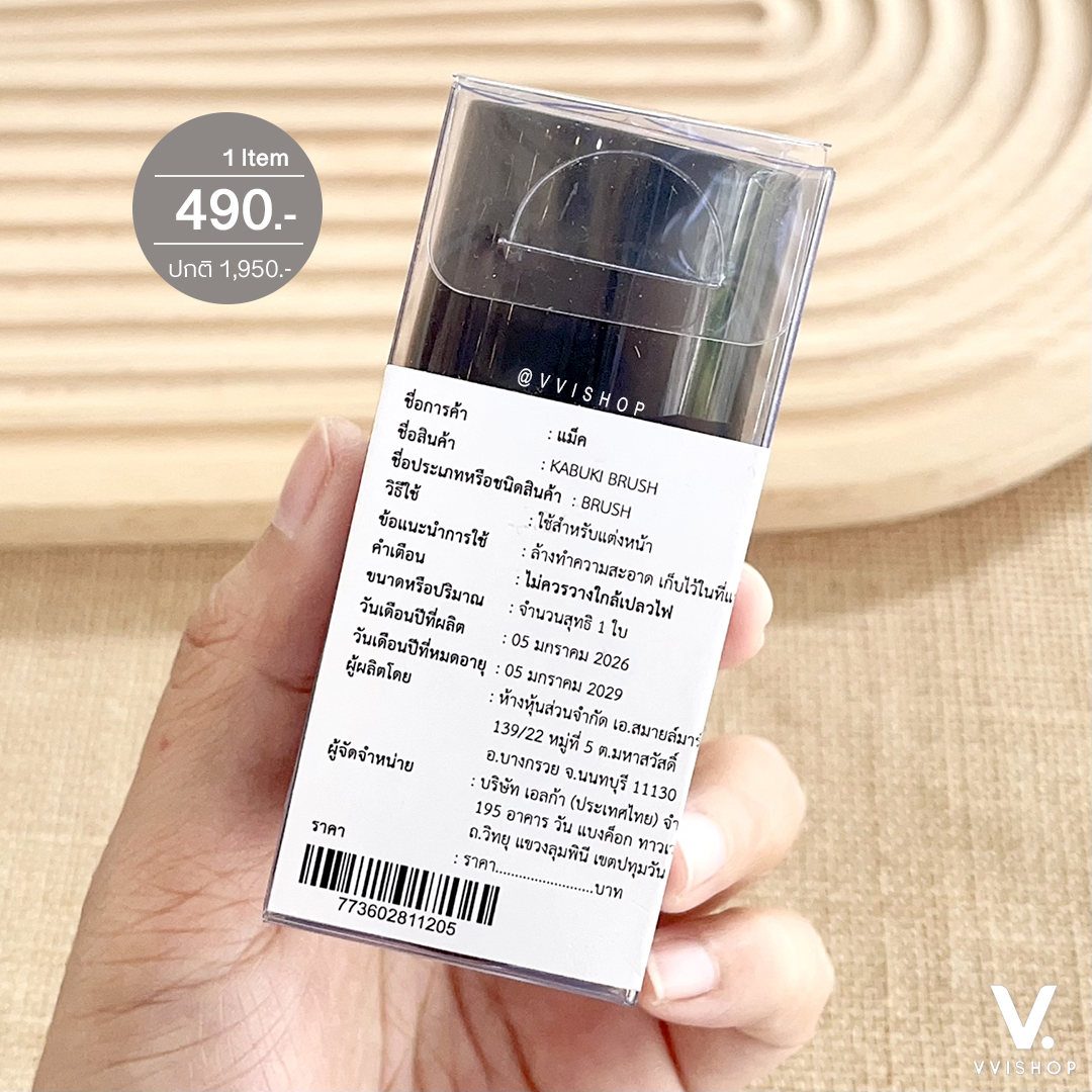 วิธีใช้ : ใช้สำหรับปัดแป้งฝุ่นบลัชออนหรือวนเนื้อแป้งเพื่อให้ผิวดูเนียนละเอียด
