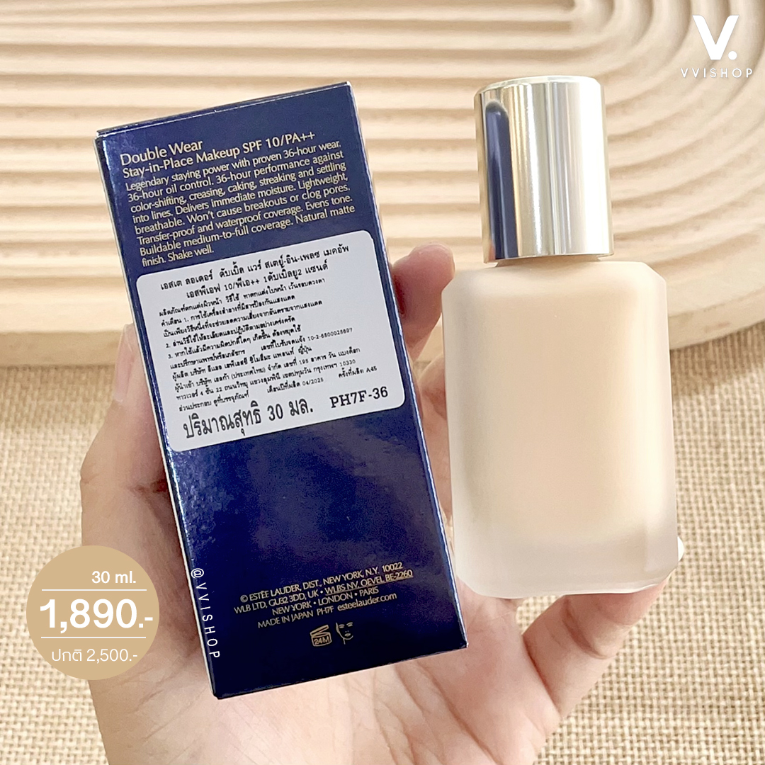 Estee Lauder The New Double Wear Stay-in-Place Makeup SPF10/PA++รองพื้นอันดับ 1 ที่ได้รับความนิยมทั่วโลกจากคุณสมบัติติดทนยาวนาน ปกปิดดีเยี่ยม และควบคุมความมันได้ดี ปรับสูตรใหม่ในรอบ 30 ปี ใช้เวลาวิจัยและพัฒนานานกว่า 7 ปี เพื่อผลลัพธ์ที่ดีขึ้นผ่านเนื้อสัมผัสที่เบาสบายและดูเป็นธรรมชาติมากขึ้น แต่ยังคงประสิทธิภาพความติดทนยาวนาน คุมมัน กันน้ำ กันเหงื่อ และปกป้องผิวจากแสงแดดด้วย SPF10 PA++ อันเป็นเอกลักษณ์ไว้คุณสมบัติ- ติดทนยาวนานขึ้น : จากเดิม 24 ชั่วโมง เพิ่มเป็น 36 ชั่วโมง ระหว่างวันผิวไม่ดรอป- เนื้อสัมผัสเบาสบาย : เนื้อรองพื้นมีความเหลวมากขึ้น เกลี่ยง่าย ให้ความรู้สึกเบาบางและไม่อุดตันรูขุมขน- ฟินิชผิวแบบใหม่ : ฟินิชแบบแมตต์ที่มีมิติ ไม่แห้งตึง ผิวดูเป็นธรรมชาติและมีชีวิตชีวามากขึ้น- การปกปิด : ยังคงระดับการปกปิดแบบปานกลางถึงสูง สามารถเพิ่มระดับได้ตามต้องการ โดยไม่รู้สึกหนักผิว- ส่วนผสมบำรุงผิว : อุดมด้วยกลีเซอรีนและไฮยาลูรอนิกแอซิด ช่วยมอบความชุ่มชื้นทันทีและยาวนานถึง 72 ชั่วโมง- ควบคุมความมัน : ส่วนผสมของไนอะซินาไมด์และสารสกัดจากสาหร่ายสีน้ำตาล ช่วยปรับสมดุลผิวและควบคุมความมันได้ดียิ่งขึ้นเบอร์- 1W2 Sand : สำหรับผิวขาวกลางๆ โทนเหลืองHOW TO USE